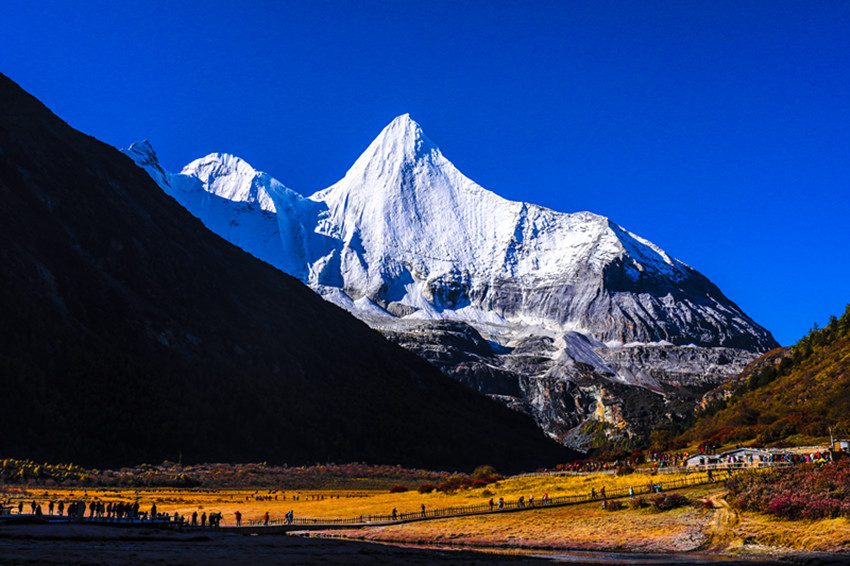 木雅民族的鍋莊跳起來了,穩(wěn)沉而有力,多情而悠長,在雪峰環(huán)繞的庇護(hù)下,“木雅辛康”(意為天堂般的木雅地方)歡樂的歌聲盈滿了整個(gè)山谷。