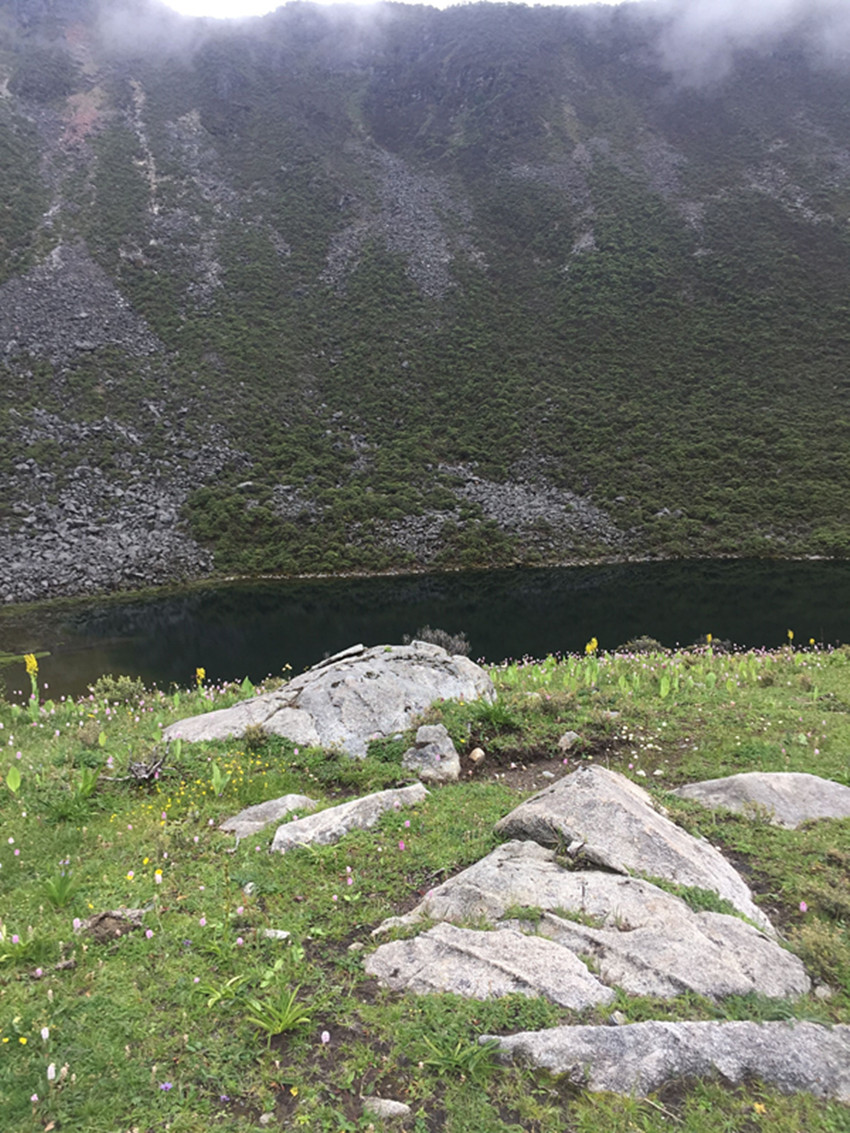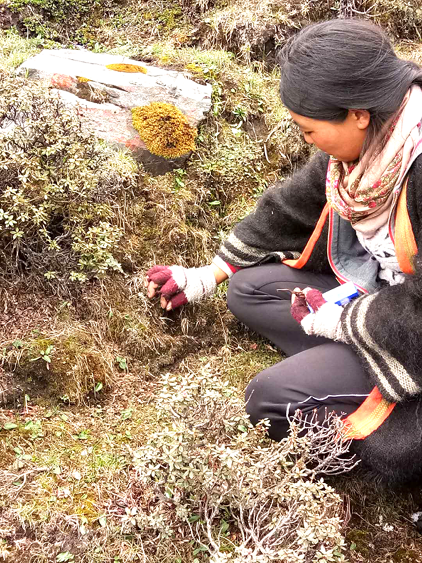 銀珠做完這個(gè)莊重的祈禱儀式,才從包里取出一個(gè)裝糖豆的鐵盒子,小心地將它放進(jìn)盒子蓋上,揣進(jìn)衣兜里。她重新埋好挖出的土,接著爬向了一叢叢小杜鵑,它們散發(fā)著淡淡的苦澀味,使她放慢了爬行的速度,細(xì)細(xì)尋找著干草木葉中的那些獨(dú)特菌類。她的手和膝蓋被雪水浸濕了,也不覺寒冷,自己像是其中的一種生靈。不一會(huì)兒,她就看到了好幾只蟲草的尾巴露在草皮上,它們的樣子分明是在歡喜奔跑,見到有人靠近倏忽間就停止下來了,令她忍不住發(fā)出了噗嗤一聲笑。南吉聽到這聲音,抬頭朝銀珠的方向看去,只見滿山的花草都在微風(fēng)中輕輕顫動(dòng)。南吉看到銀珠許久沒有挪動(dòng),便知道她找到了自己的纖草堂子……