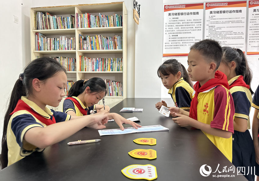 5月31日,南充市嘉陵區(qū)之江小學“美習銀行”,學生們在儲存“美習幣”。人民網記者 王波攝
