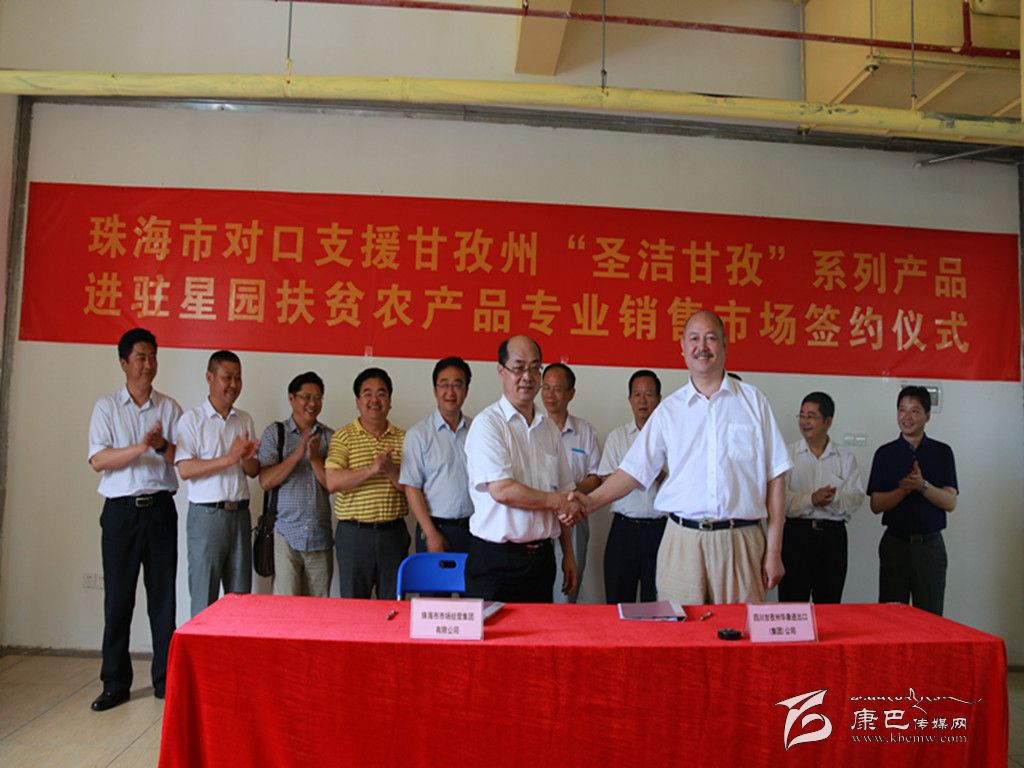 珠海市為了更好幫助甘孜州推銷特色農(nóng)副產(chǎn)品,還專門在位于繁華市區(qū)的星園市場(chǎng)開辟了珠海市對(duì)口幫扶地區(qū)特優(yōu)農(nóng)副產(chǎn)品專業(yè)銷售市場(chǎng),并設(shè)立了近400平方米的“圣潔甘孜”特色產(chǎn)品專銷區(qū)。在參觀了甘孜州產(chǎn)品專區(qū)后,我州考察團(tuán)領(lǐng)導(dǎo)與珠海市相關(guān)領(lǐng)導(dǎo)共同見證了珠海市對(duì)口支援甘孜州“圣潔甘孜”系列產(chǎn)品進(jìn)駐星園扶貧農(nóng)產(chǎn)品專業(yè)銷售市場(chǎng)簽約儀式,我州知名民營(yíng)企業(yè)華康進(jìn)出口(集團(tuán))公司正式成為進(jìn)駐星園扶貧農(nóng)產(chǎn)品專業(yè)銷售市場(chǎng)的第一家州內(nèi)企業(yè)。