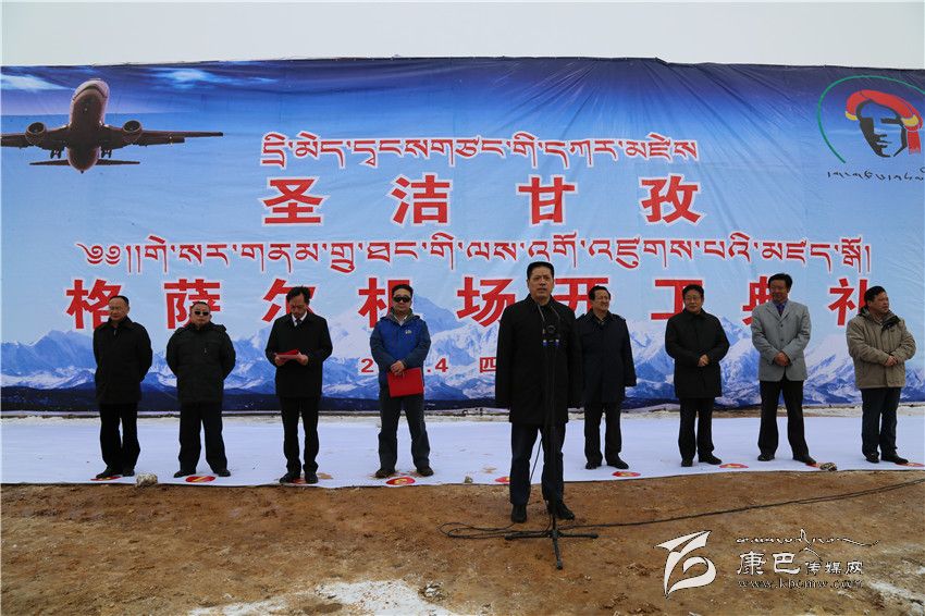 益西達(dá)瓦在致辭中指出,甘孜格薩爾機(jī)場是繼康定機(jī)場、稻城亞丁機(jī)場之后,我州建設(shè)的第三個(gè)機(jī)場,項(xiàng)目投資22.88億元,力爭2017年10月建成試飛。甘孜格薩爾機(jī)場的開工建設(shè),是我州實(shí)施“交通先行”戰(zhàn)略的重大舉措,對進(jìn)一步加快我州經(jīng)濟(jì)社會全面協(xié)調(diào)可持續(xù)發(fā)展具有十分重要的意義。該機(jī)場的建成,必將開啟我州“十三五”發(fā)展的新征程,必將推動(dòng)我州經(jīng)濟(jì)社會實(shí)現(xiàn)新跨越,必將促進(jìn)我州旅游等產(chǎn)業(yè)實(shí)現(xiàn)新發(fā)展,必將加快我州農(nóng)牧民群眾脫貧奔康的新步伐。他說,建設(shè)甘孜格薩爾機(jī)場是全州人民特別是北路群眾多年的期盼,機(jī)場規(guī)劃在“十一五”、爭取在“十二五”、建設(shè)在“十三五”,飽含著中央領(lǐng)導(dǎo)和國家部委的厚愛,體現(xiàn)著省委、省政府的重視,凝聚著歷屆州委、州政府的心血,我們一定要倍加珍惜,一定要把甘孜格薩爾機(jī)場建設(shè)成一流的高原機(jī)場。希望甘孜、德格兩縣通力合作、協(xié)調(diào)配合,切實(shí)為機(jī)場建設(shè)營造良好的外部環(huán)境;希望州級相關(guān)部門簡化程序、搞好服務(wù),切實(shí)為該機(jī)場建設(shè)開辟“綠色”通道;希望廣大人民群眾多理解、多支持,切實(shí)擁護(hù)機(jī)場的各項(xiàng)建設(shè);希望各參建單位和廣大建設(shè)者發(fā)揚(yáng)“亞丁機(jī)場精神”,努力把甘孜格薩爾機(jī)場建設(shè)成為一流的標(biāo)桿工程。