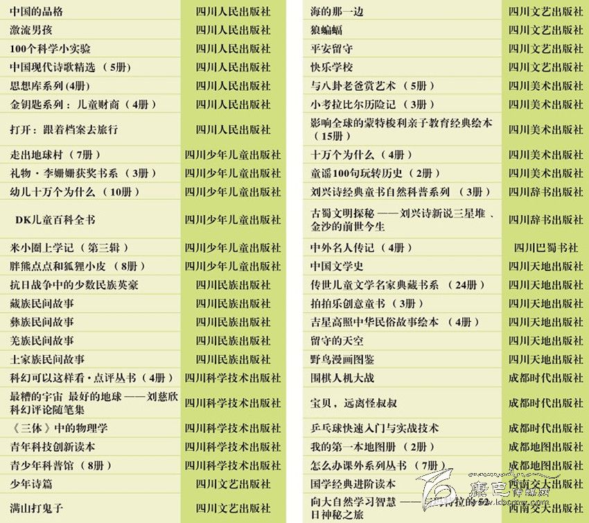 五部門聯(lián)合推薦50種川版出版物