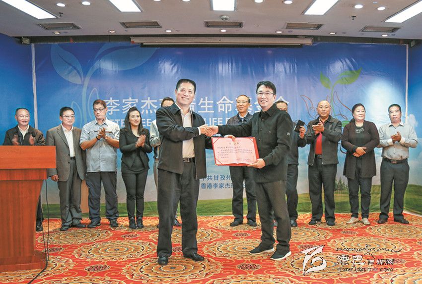圖為劉成鳴向李家杰珍惜生命基金會(huì)頒發(fā)榮譽(yù)證書。