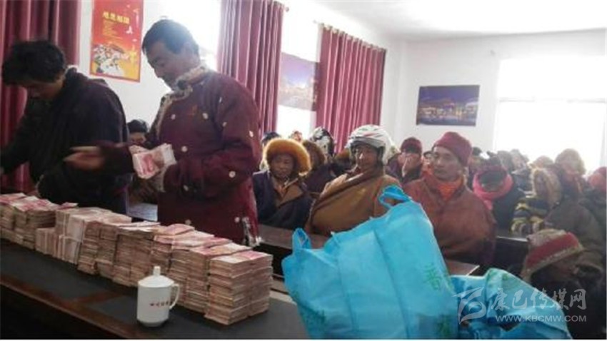 俄達(dá)門巴村民現(xiàn)場領(lǐng)取分紅款。