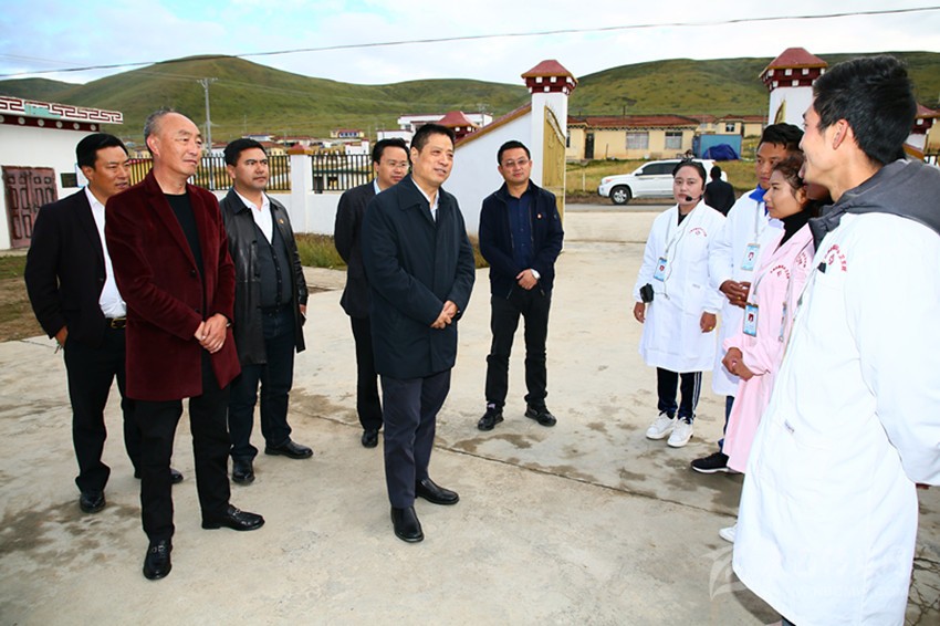 劉成鳴在石渠縣德榮瑪鄉(xiāng)衛(wèi)生院調(diào)研基層衛(wèi)計(jì)和包蟲病防治工作。