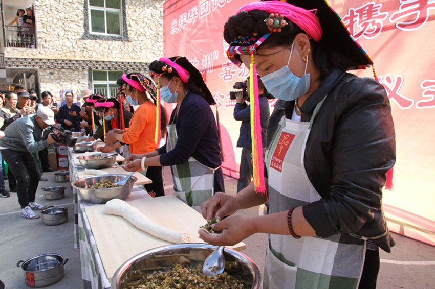啟動儀式上,五家群團部門負責(zé)人分別上臺接收“喜波勒雄”公益助貧行動任務(wù)包。隨即,開展的“喜波勒雄”新時代講堂、包酸菜包子、民俗接待基礎(chǔ)技能比拼、栓頭帕比賽、繡藏繡比賽等“五洗一掃”評選分項活動人氣爆棚,過往游客紛紛駐足,盛贊當?shù)孛袼罪L(fēng)情獨具特色。