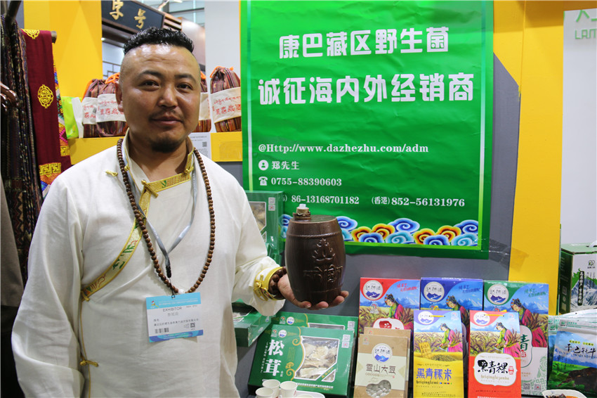 本網(wǎng)訊(記者 宋志勇 文/圖)“這是什么菌類,是野生的嗎?”“是的,是高原野生松茸,還有牦牛肉等,都是本地原生態(tài)綠色產(chǎn)品?!?月13日,參加第十四屆(深圳)文博會的康定市達折渚生態(tài)農(nóng)畜產(chǎn)品開發(fā)有限公司負責人洛布,對前來我州展館購買產(chǎn)品的市民和游客們肯定地說,圍在展臺的人們在品嘗到可口的牦牛肉產(chǎn)品的同時,還詢問包裝好的野生菌、青稞等系列產(chǎn)品。