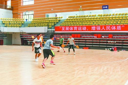 蹴主意為踢,廣義的蹴球就是踢球,亦稱(chēng)“蹴鞠”。此次省民運(yùn)會(huì)上的蹴球項(xiàng)目以地?cái)S球?yàn)槠鞑模瑢儆?5類(lèi)“蹴球”游戲之中的“踢石球”。