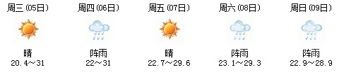 雖然明天太陽有點(diǎn)兇,但7日、8日、9日三天陣雨及時(shí)出現(xiàn),日最高氣溫穩(wěn)定在30℃附近。