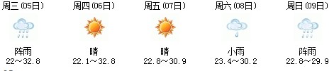 5日開始一直到9日都是多云到晴的天氣,日最高氣溫27℃左右。每天都有陣雨(小雨),考生出行應(yīng)防山地災(zāi)害。