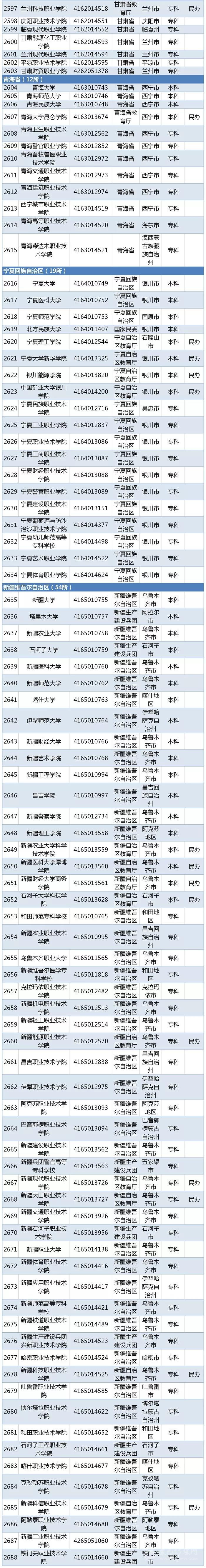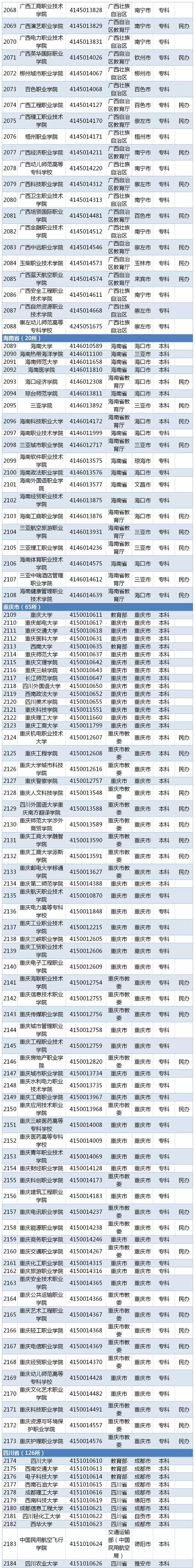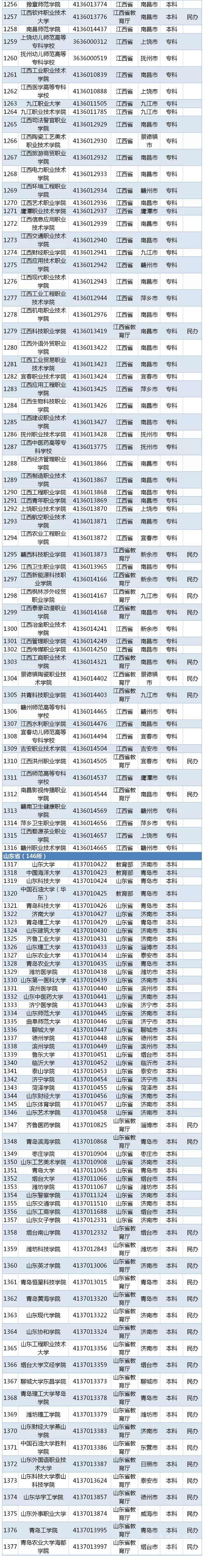 教育部最新發(fā)布2019全國高校名單