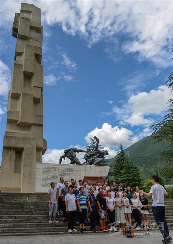 7月26日,市民在紅軍飛奪瀘定橋紀(jì)念碑下練習(xí)合唱。新華社發(fā)(唐文豪 攝)