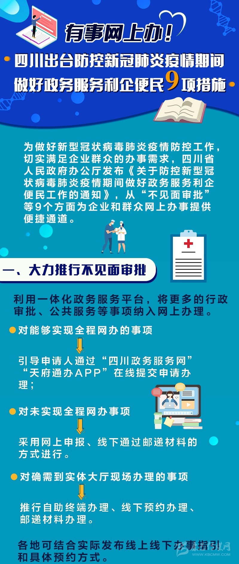 近日,四川省人民政府辦公廳印發(fā)了《關(guān)于防控新型冠狀病毒肺炎疫情期間做好政務(wù)服務(wù)利企便民工作的通知》。出臺(tái)眾多疫情防控期間利企便民舉措,明確具體辦理平臺(tái)和執(zhí)行流程,并將責(zé)任落實(shí)到各市(州)、縣(市、區(qū))政府,各部門機(jī)構(gòu)。