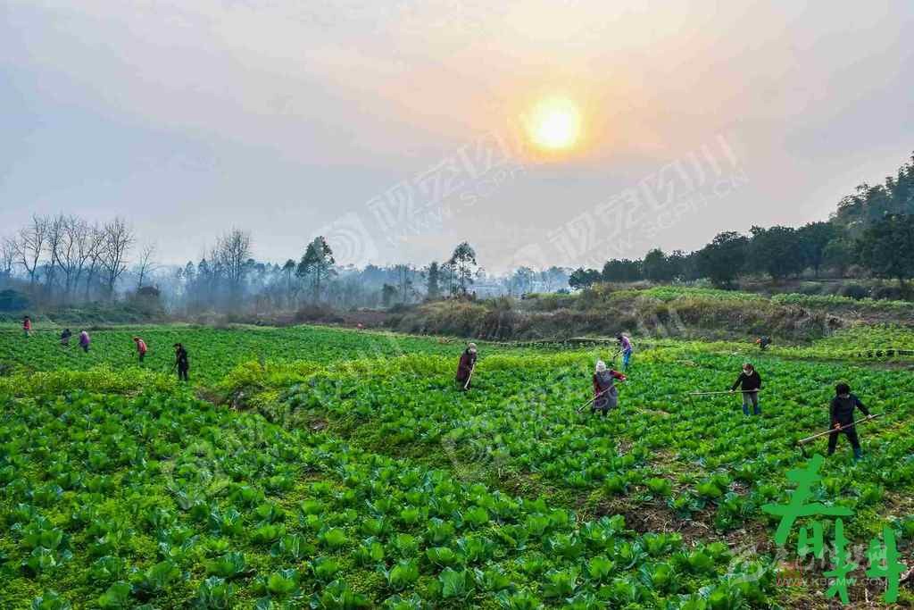 內(nèi)江市東興區(qū)雙橋鎮(zhèn)付家村,人們正在清除蔬菜地中的雜草。
