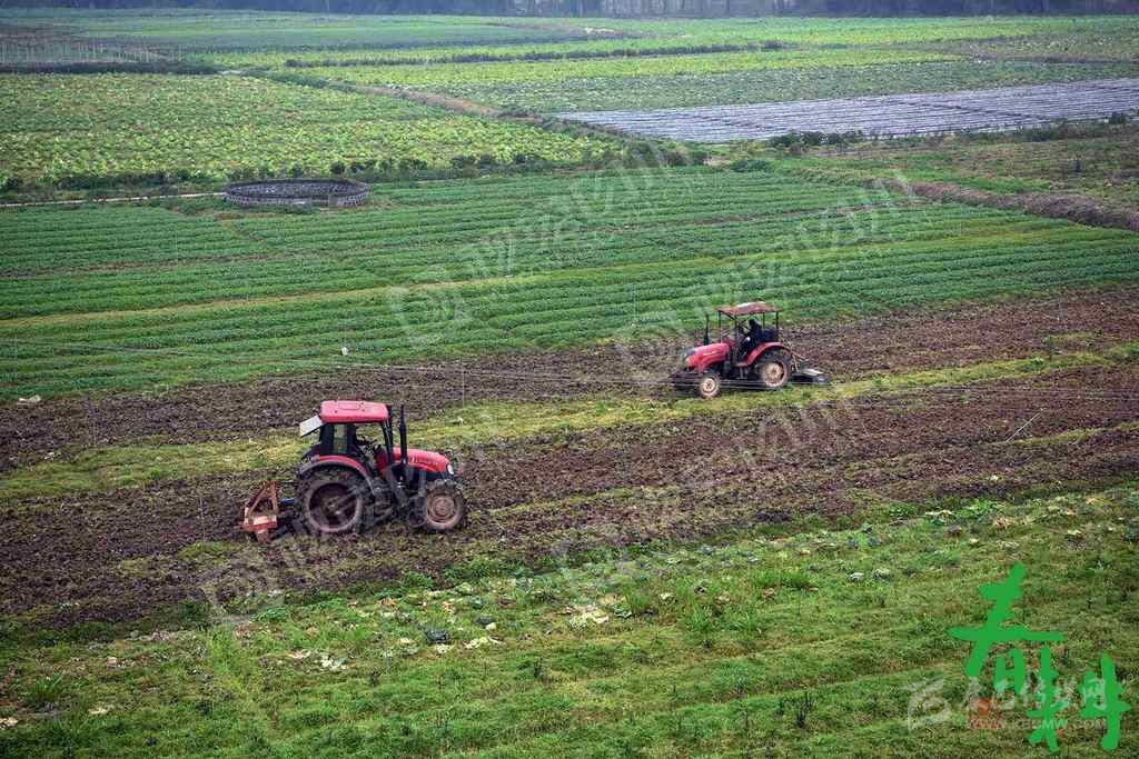旋耕機在南充市高坪區(qū)金鳳山村廣豐有機蔬菜基地整理菜地。