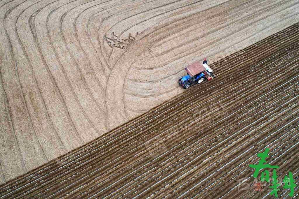 射洪市沱牌鎮(zhèn)桑樹林村,戴著口罩的農(nóng)戶正在地里播種、蓋膜。