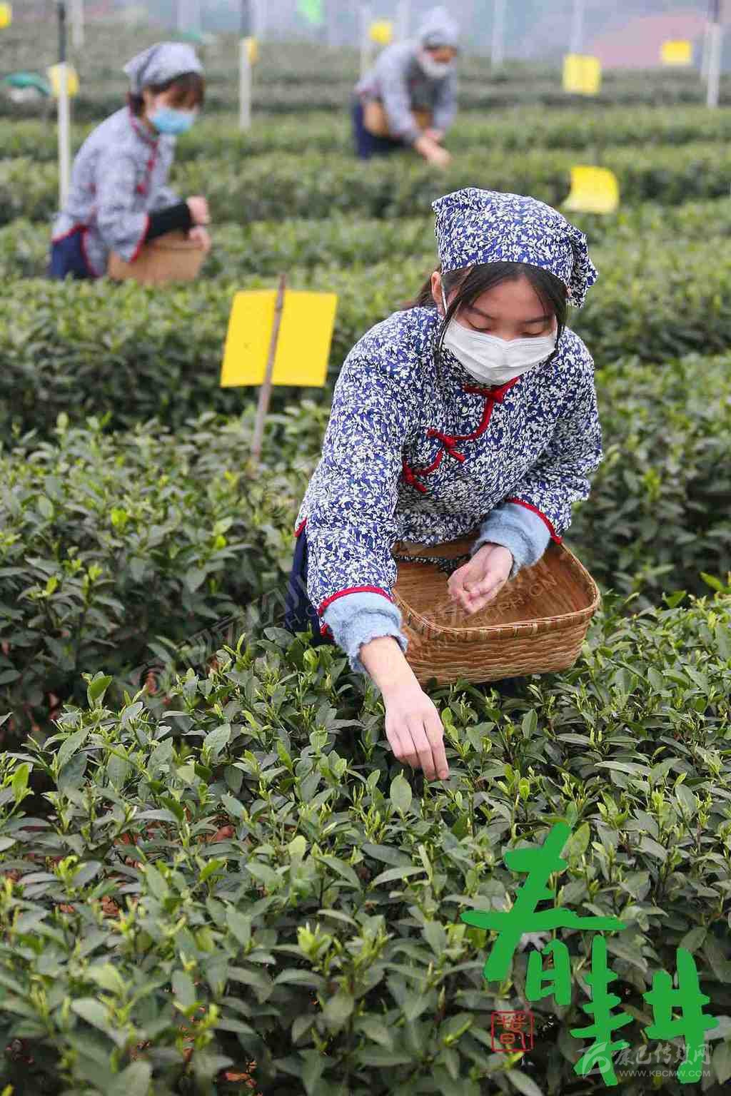 宜賓市翠屏區(qū)金秋湖鎮(zhèn)萬畝有機早茶基地,采茶姑娘們在忙著采摘早茶。