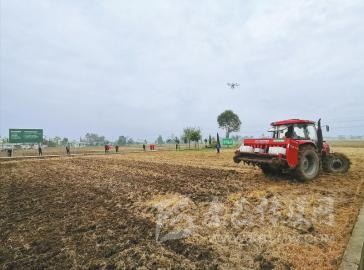 綿陽市安州區(qū)河清鎮(zhèn)小麥綠色高質高效示范區(qū)內,正在展示小麥機械直播施肥一體化技術。
