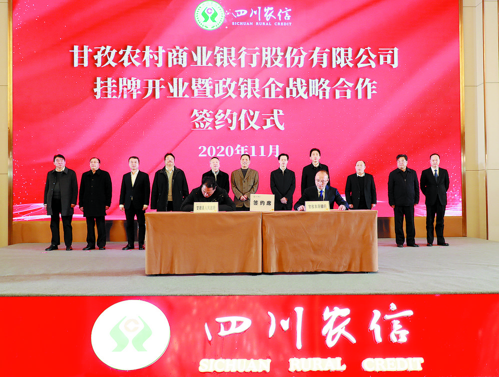 開業(yè)儀式上,甘孜農商銀行主要負責同志作了表態(tài)發(fā)言,并與甘孜州有關縣(市)人民政府代表簽訂了政銀戰(zhàn)略合作協(xié)議,與央企、國企和民營企業(yè)代表簽訂了銀企戰(zhàn)略合作協(xié)議。
