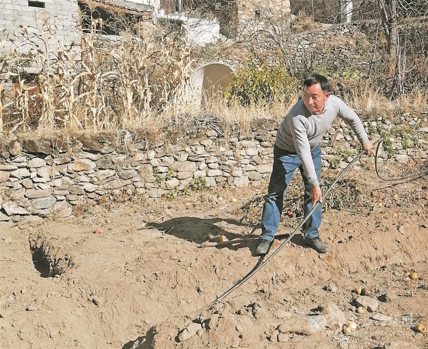 次仁鄧珠摘樹椒。 受訪者供圖