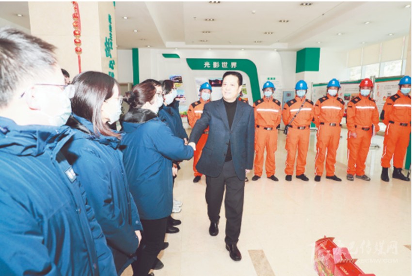 圖為劉成鳴在國(guó)網(wǎng)甘孜供電公司親切看望慰問公司員工。