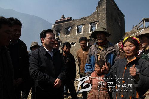 22日早晨8時(shí),胡昌升帶著對(duì)受災(zāi)群眾的惦念、對(duì)災(zāi)情的關(guān)注、對(duì)撲火人員的慰問,驅(qū)車前往康定縣沙德鄉(xiāng)火災(zāi)現(xiàn)場(chǎng)慰問受災(zāi)群眾、查看火災(zāi)災(zāi)情,指揮撲火工作。此前的21日,上赤村洛讓鄧珠的房屋在此次森林火災(zāi)中被燒毀。一到上赤村,胡昌升便踩著帶著余溫的瓦礫來到受災(zāi)農(nóng)戶洛讓鄧珠家,為洛讓鄧珠送上慰問金及毛毯、被子等物資,看望洛讓鄧珠的家人,詳細(xì)詢問家庭基本情況和災(zāi)后安置情況。胡昌升說,大火無情人有情,房子沒了可以再建,東西燒毀了可以再買,人沒事就好,困難是暫時(shí)的,黨委、政府一定會(huì)照顧好你們的生活,和你們一起克服眼前困難,幫助你們盡快建設(shè)更加美麗、更加安全的新家園。他要求縣鄉(xiāng)黨委、政府要幫助洛讓鄧珠切實(shí)解決吃飯、穿衣、帳篷及房屋重建等實(shí)際困難,把黨委政府的溫暖送到他們心上。胡昌升還鼓勵(lì)洛讓鄧珠要振作起來,在黨委政府的幫助下重建家園,不要因受災(zāi)耽誤孩子上學(xué)。希望鄉(xiāng)親們積極伸出援手,幫助洛讓鄧珠家解決生活困難、開展家園重建。