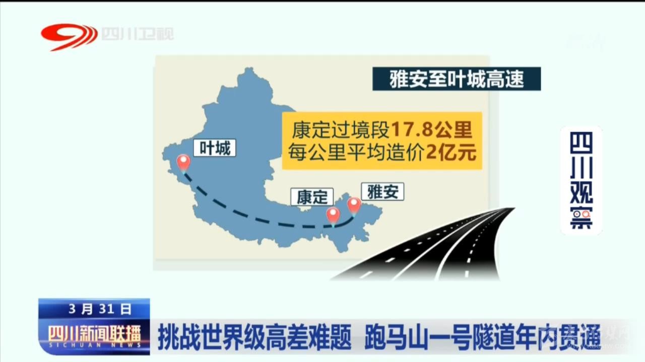 記者 王琰:這里是雅葉高速康定過境段,在我身后跑馬山一號(hào)隧道正在全速掘進(jìn),到今年年底隧道有望實(shí)現(xiàn)貫通。