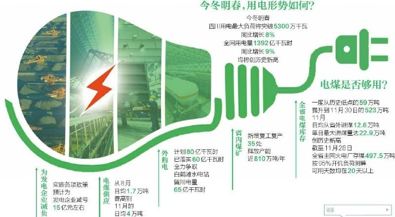 截至11月28日,全省主網(wǎng)火電廠存煤497.5萬噸,按95%開機(jī)負(fù)荷測算,可用天數(shù)均在20天以上。同時,國網(wǎng)四川省電力公司全力落實外購電量和留川電量,外購電計劃80億千瓦時已落實60億千瓦時,全力爭取白鶴灘水電站留川電量65億千瓦時。