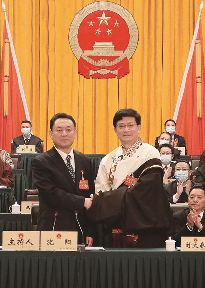 州十三屆人大常委會(huì)第四次會(huì)議上,舒大春向被任命人員頒發(fā)任命書(shū)。