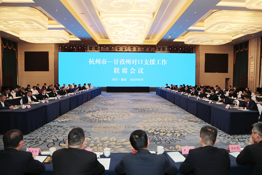 杭州市——甘孜州對口支援工作聯(lián)席會議現(xiàn)場。