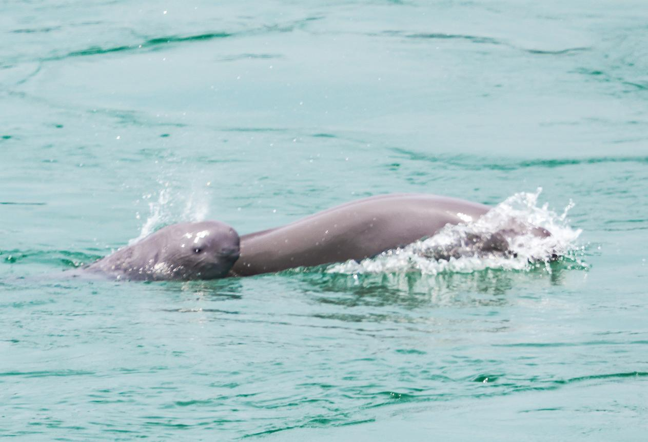 △湖北省宜昌市,江豚在葛洲壩下游水域逐浪嬉戲(2023年5月20日攝)。根據(jù)農(nóng)業(yè)農(nóng)村部2023年2月28日公布的2022年長江江豚科學(xué)考察結(jié)果,長江江豚種群數(shù)量為1249頭。與2017年上一次科學(xué)考察相比,江豚數(shù)量出現(xiàn)了止跌回升的歷史性轉(zhuǎn)折。