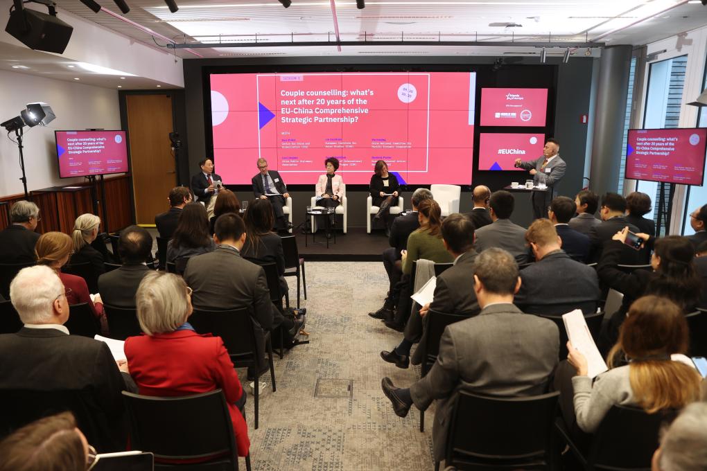 這是11月23日在比利時(shí)布魯塞爾拍攝的第十一屆中歐論壇現(xiàn)場。新華社記者趙丁喆 攝