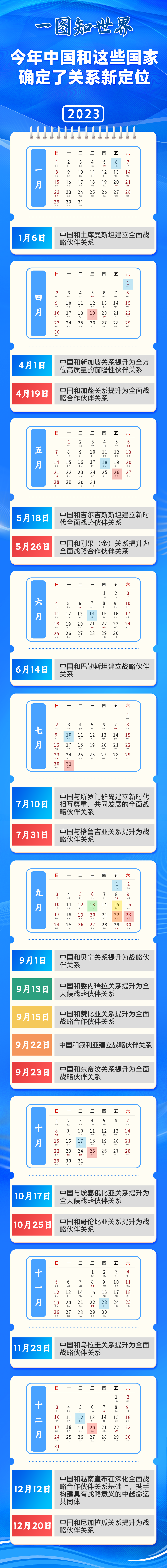 中國(guó)致力于同所有國(guó)家本著和平共處五項(xiàng)原則發(fā)展友好伙伴關(guān)系。中國(guó)的好朋友遍天下。今年以來(lái),中國(guó)和哪些國(guó)家確定了關(guān)系新定位?我們來(lái)一圖讀懂——