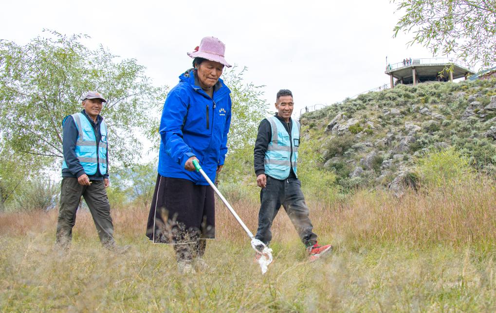 ??每天上午9點(diǎn),白瑪喬準(zhǔn)時帶好工具出發(fā)。修補(bǔ)圍欄、阻止不文明行為、撿拾垃圾……白瑪喬通常要圍著雅尼濕地走上半天。管護(hù)途中,遙遠(yuǎn)的路程是考驗(yàn),頂著風(fēng)浪劃船巡查亦是家常便飯。