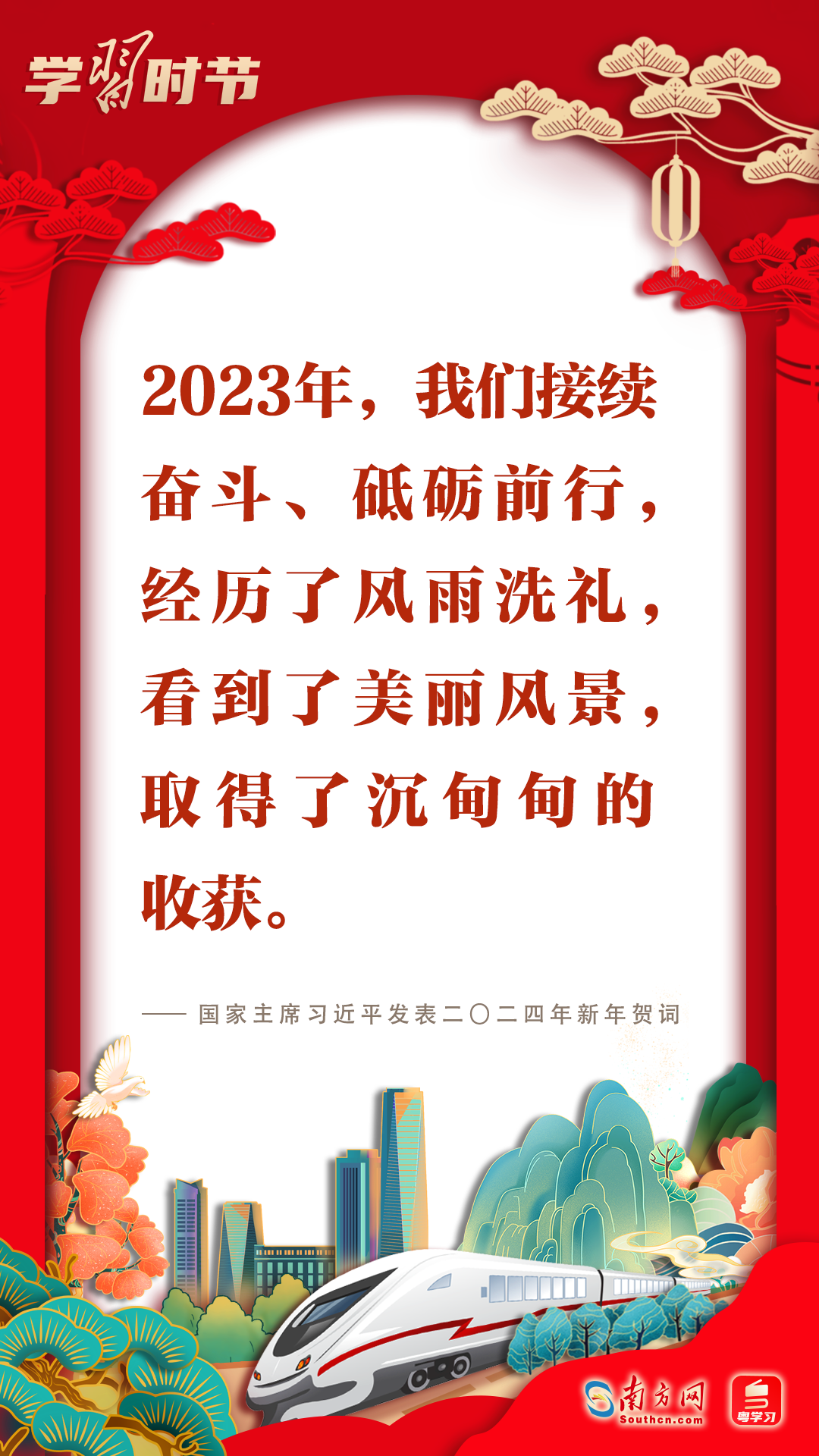 2023年12月31日晚,國家主席習(xí)近平在北京發(fā)表二〇二四年新年賀詞。賀詞飽含對廣大人民群眾的深情,彰顯對中國發(fā)展的堅(jiān)定信心。回首過往,展望未來;砥礪前行,征程再起。讓我們一起在習(xí)近平主席的新年賀詞中感受直抵心靈的溫暖、催人奮進(jìn)的力量!