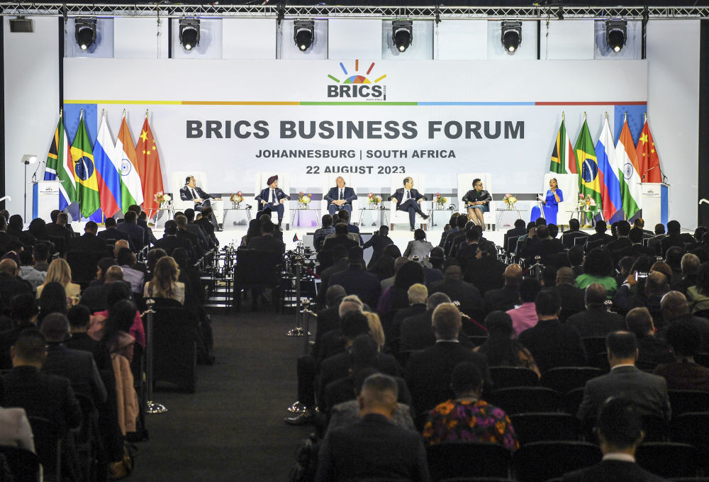 這是2023年8月22日在南非約翰內(nèi)斯堡拍攝的金磚國家工商論壇現(xiàn)場(chǎng)。新華社記者 李亞輝 攝