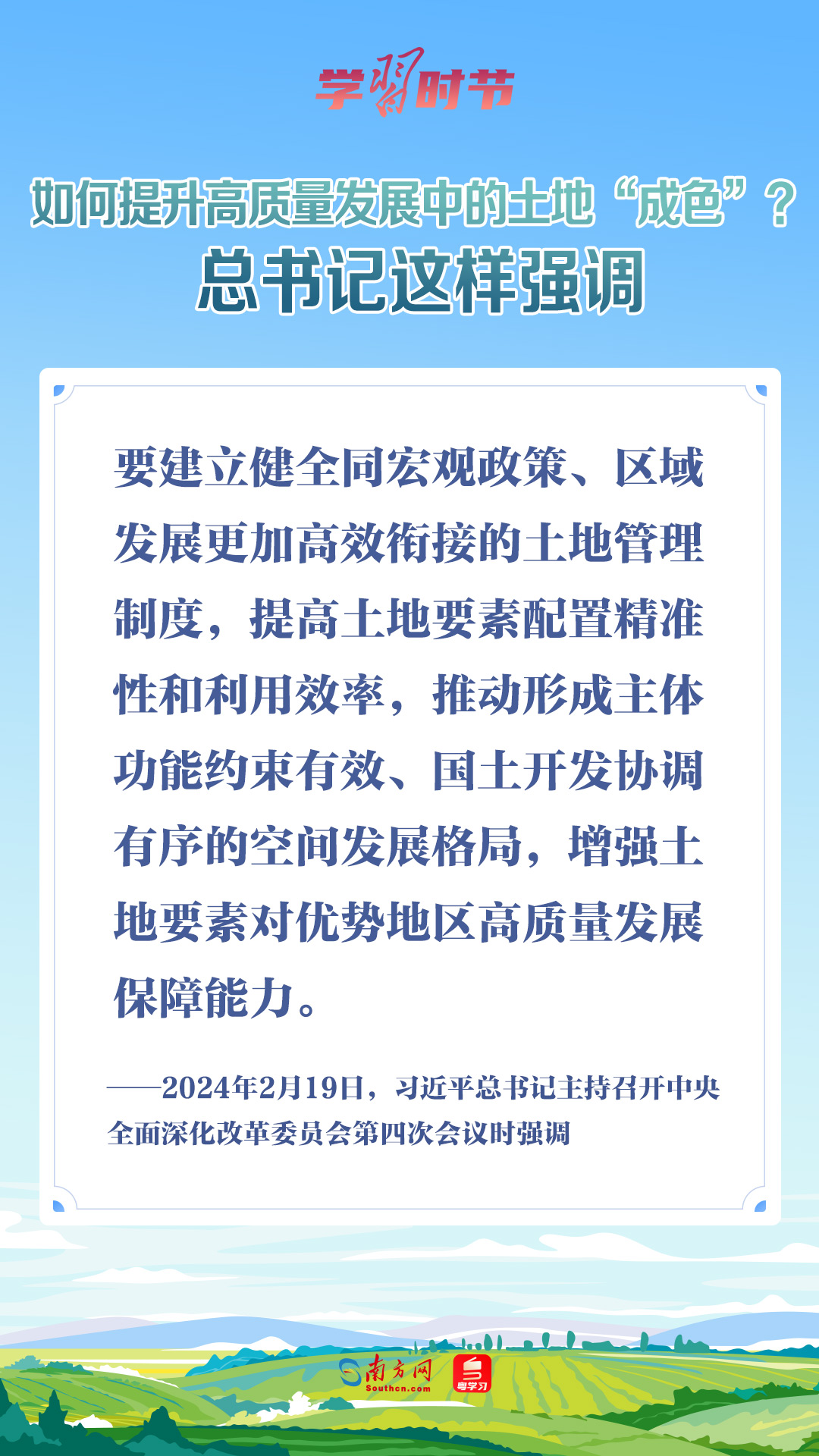 2月19日,習近平總書記在主持中央全面深化改革委員會第四次會議時強調,要建立健全同宏觀政策、區(qū)域發(fā)展更加高效銜接的土地管理制度,提高土地要素配置精準性和利用效率,推動形成主體功能約束有效、國土開發(fā)協調有序的空間發(fā)展格局,增強土地要素對優(yōu)勢地區(qū)高質量發(fā)展保障能力。