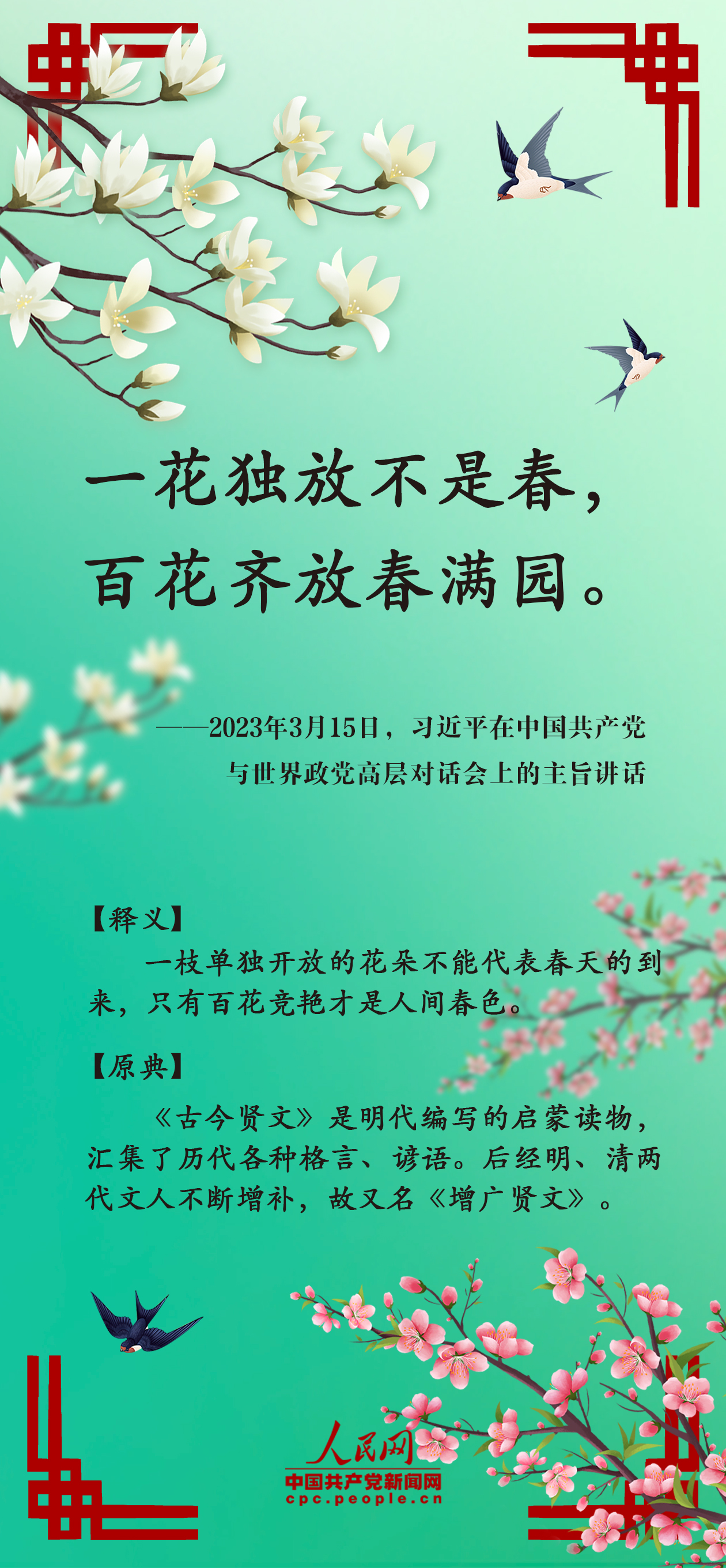 春是新的開始,是萬物生發(fā)、欣欣向榮的美好時(shí)節(jié)。習(xí)近平總書記曾多次引經(jīng)據(jù)典,用詩文名句展現(xiàn)生機(jī)盎然的春天景象。一年之計(jì)在于春,一起領(lǐng)會(huì)中華傳統(tǒng)文化的深刻內(nèi)涵,凝聚蓬勃向上的發(fā)展之力。