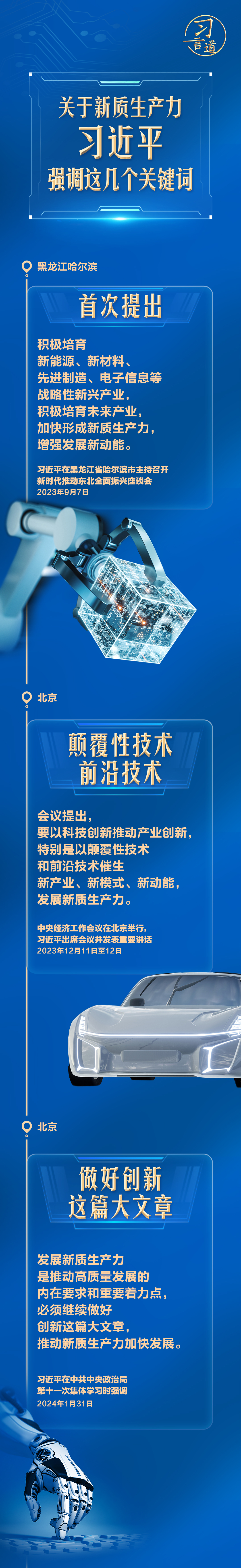 從去年9月在黑龍江考察時(shí)首次提出,到今年1月在中央政治局第十一次集體學(xué)習(xí)時(shí)系統(tǒng)闡述,再到此次兩會(huì)期間強(qiáng)調(diào),習(xí)近平多次談到新質(zhì)生產(chǎn)力。讓我們沿著總書(shū)記的足跡,一起研讀。
