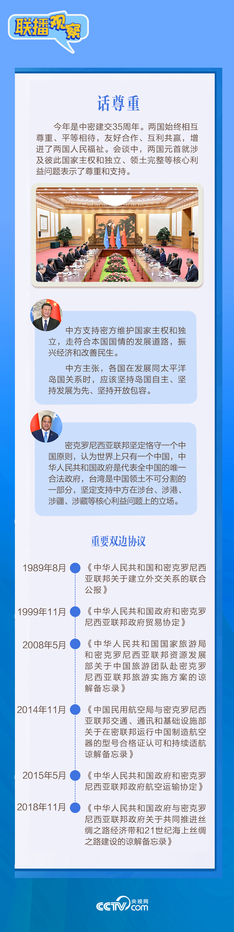 聯(lián)播+應(yīng)習(xí)近平主席邀請(qǐng),密克羅尼西亞聯(lián)邦總統(tǒng)韋斯利·西米納于4月5日至12日對(duì)中國(guó)進(jìn)行國(guó)事訪問(wèn)。4月9日下午,習(xí)近平主席在北京人民大會(huì)堂同西米納總統(tǒng)舉行會(huì)談,就雙邊關(guān)系發(fā)展及共同關(guān)心的問(wèn)題深入交換意見(jiàn)。雙方會(huì)談哪些細(xì)節(jié)值得關(guān)注?央視網(wǎng)《聯(lián)播觀察》帶您了解。