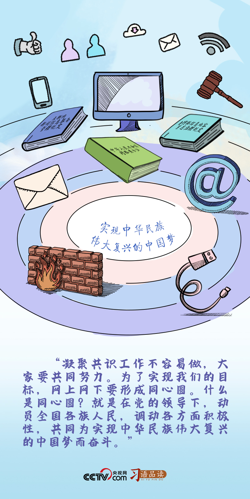 “網(wǎng)上網(wǎng)下要形成同心圓”“形成最大公約數(shù),畫出最大的同心圓”……習(xí)近平總書記曾多次用“同心圓”這一比喻指明推進(jìn)網(wǎng)絡(luò)強(qiáng)國(guó)建設(shè)、促進(jìn)網(wǎng)信事業(yè)發(fā)展的方向。