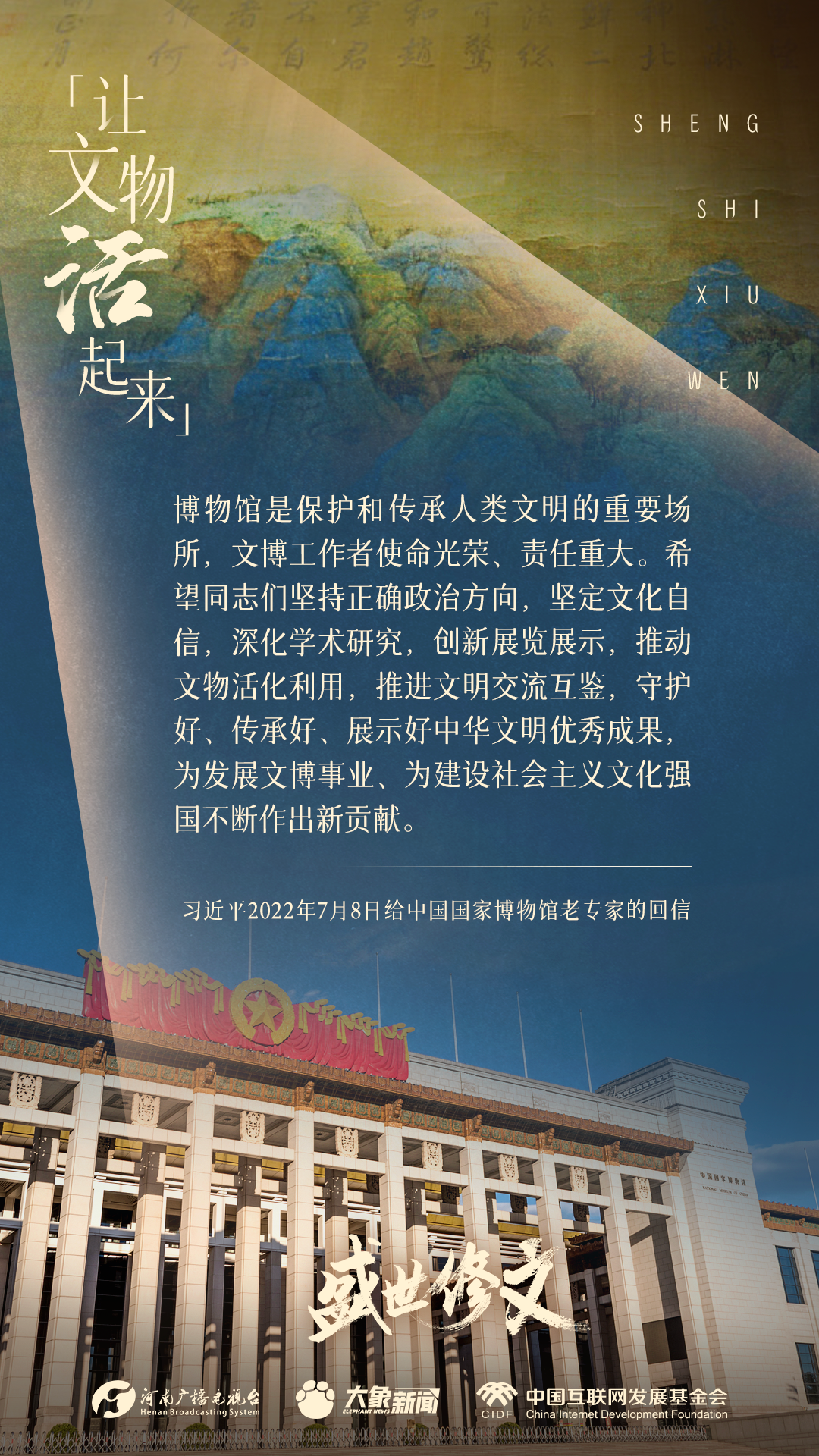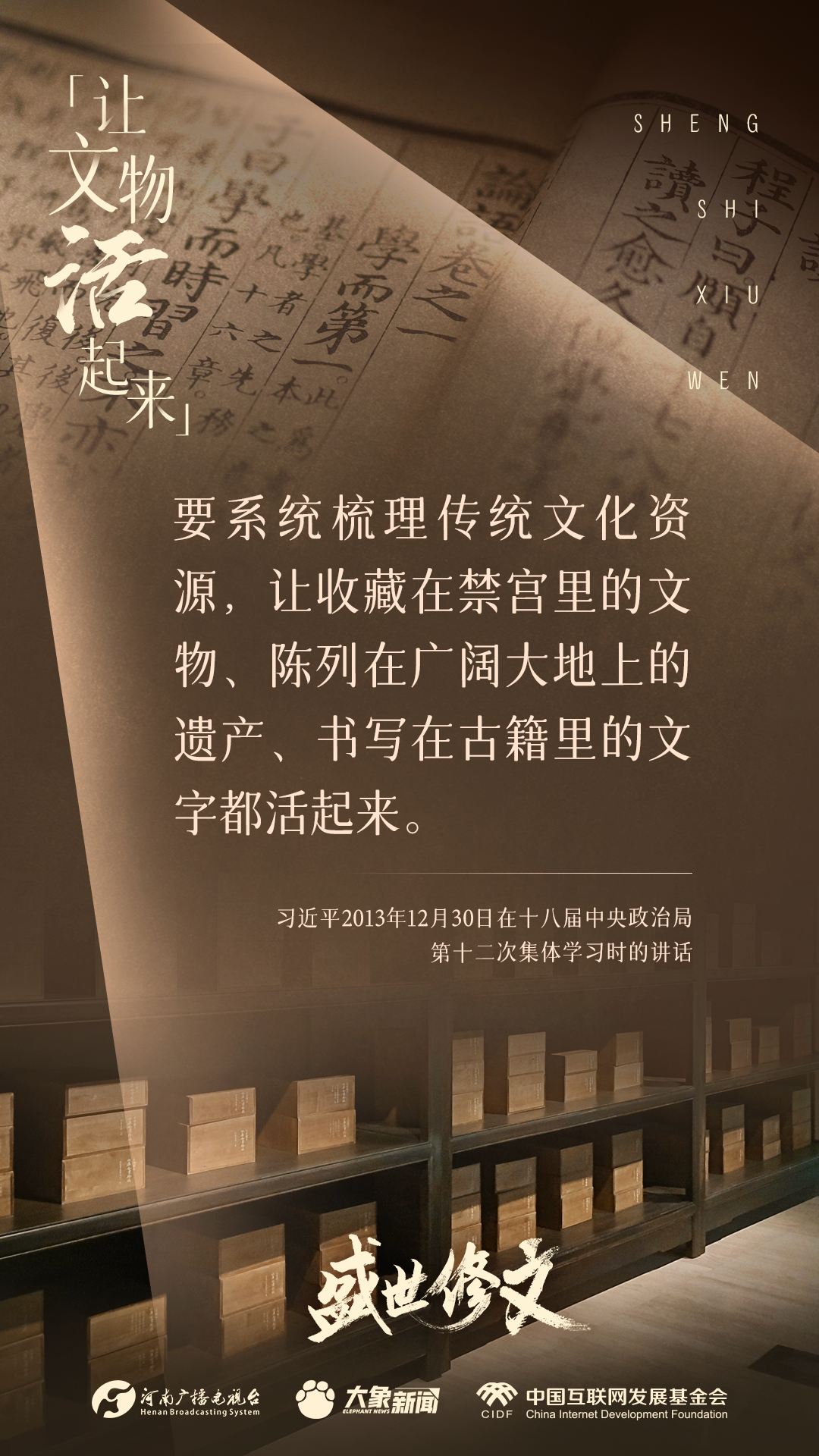 《盛世修文》主題策劃,由中國互聯(lián)網(wǎng)發(fā)展基金會中國正能量網(wǎng)絡傳播專項基金資助支持。