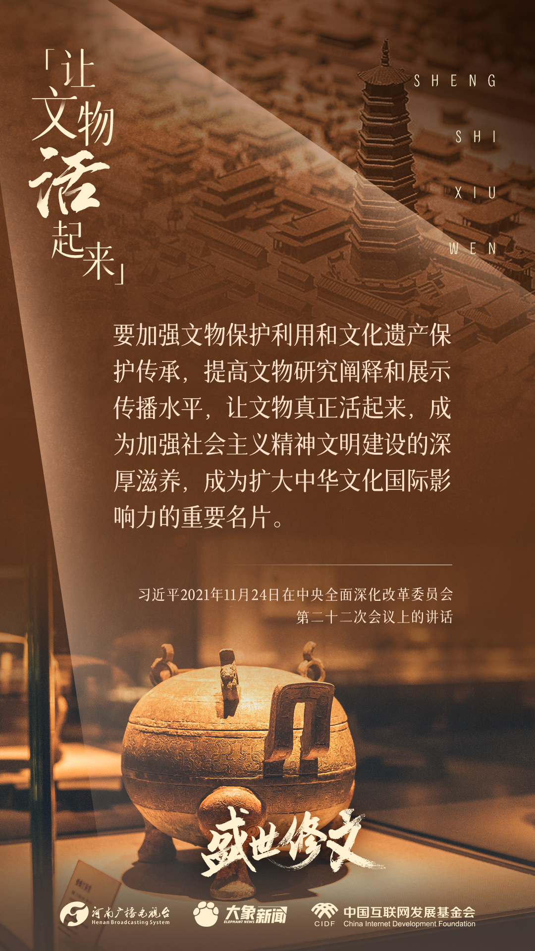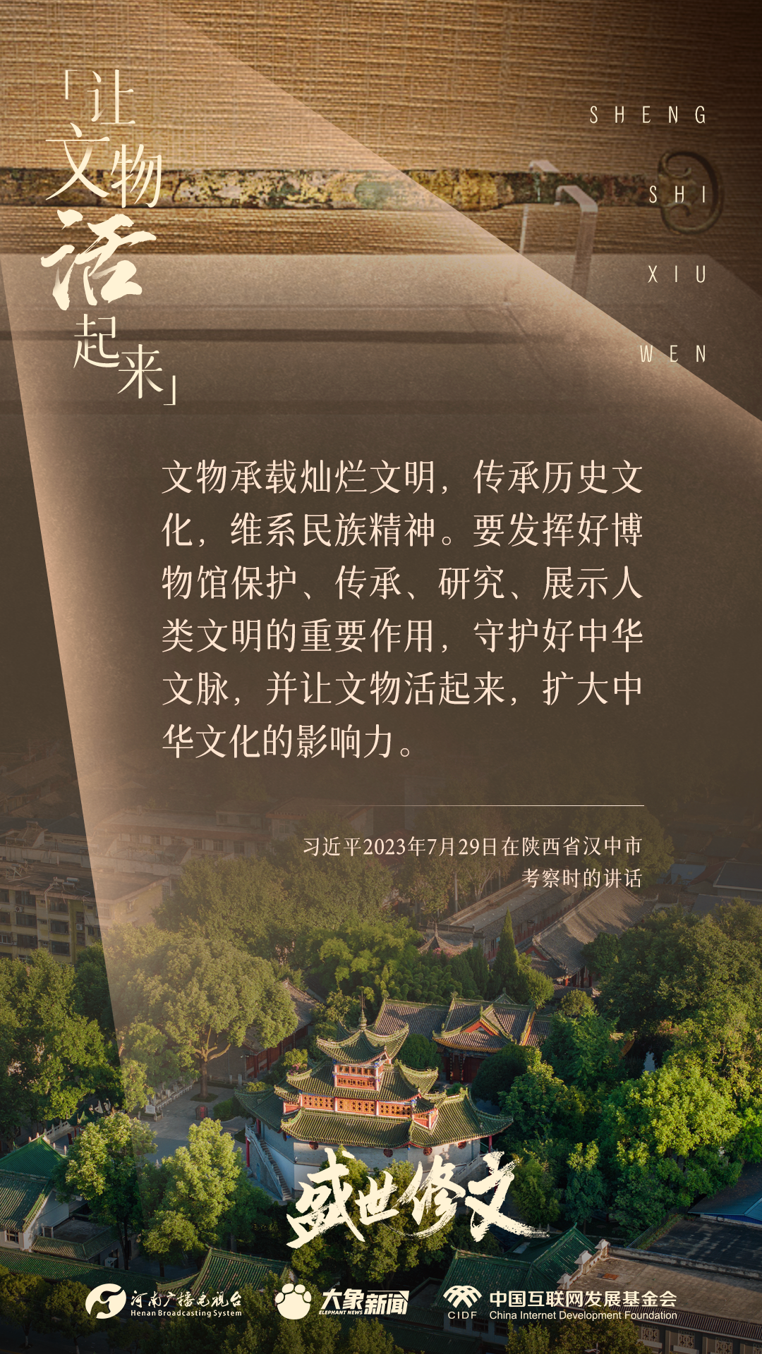 今天推出:習近平文化思想金句之《盛世修文|讓文物活起來》