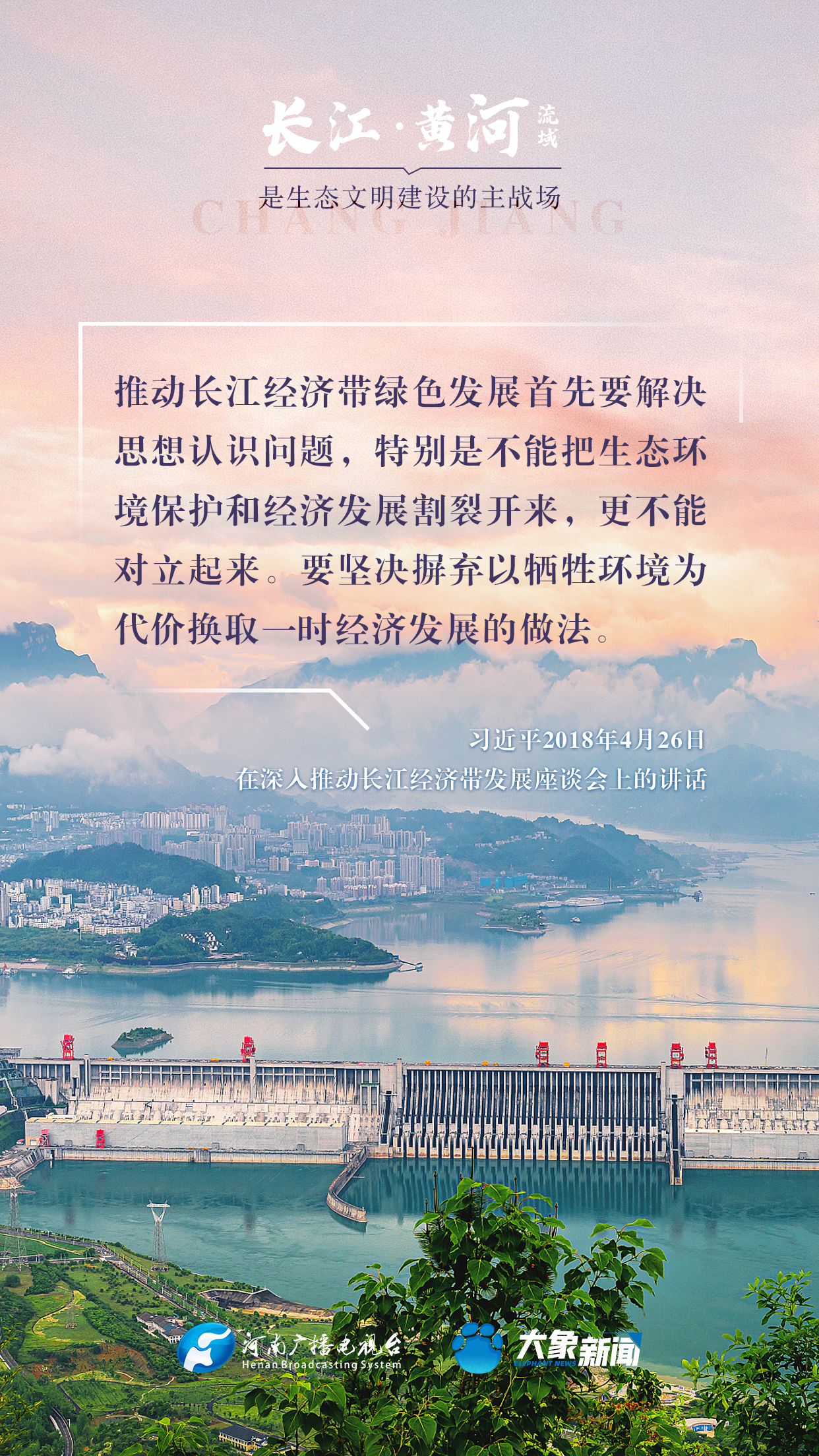 長江、黃河都是中華民族的母親河,習近平總書記高度重視長江、黃河的生態(tài)保護,多次諄諄告誡:“保護母親河是事關(guān)中華民族偉大復興和永續(xù)發(fā)展的千秋大計”“長江、黃河流域是生態(tài)文明建設(shè)的主戰(zhàn)場”等等。在第55個世界地球日到來之際,大象新聞與您一起,感受總書記對母親河的深厚情懷。