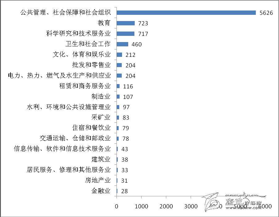 2013年末,在第二產(chǎn)業(yè)和第三產(chǎn)業(yè)法人單位中,位居前三位的行業(yè)是:公共管理、社會保障和社會組織 5626 個,占62.87 %;教育723個,占8.08 %;科學(xué)研究和技術(shù)服務(wù)業(yè)717個,占8.01 %。在有證照個體經(jīng)營戶中,位居前三位的行業(yè)是:批發(fā)和零售業(yè)8349個,占41.69 %;交通運輸、倉儲和郵政業(yè)6462個,占32.27 %;住宿和餐飲業(yè)3102個,占 15.49 %(詳見表1-2)。