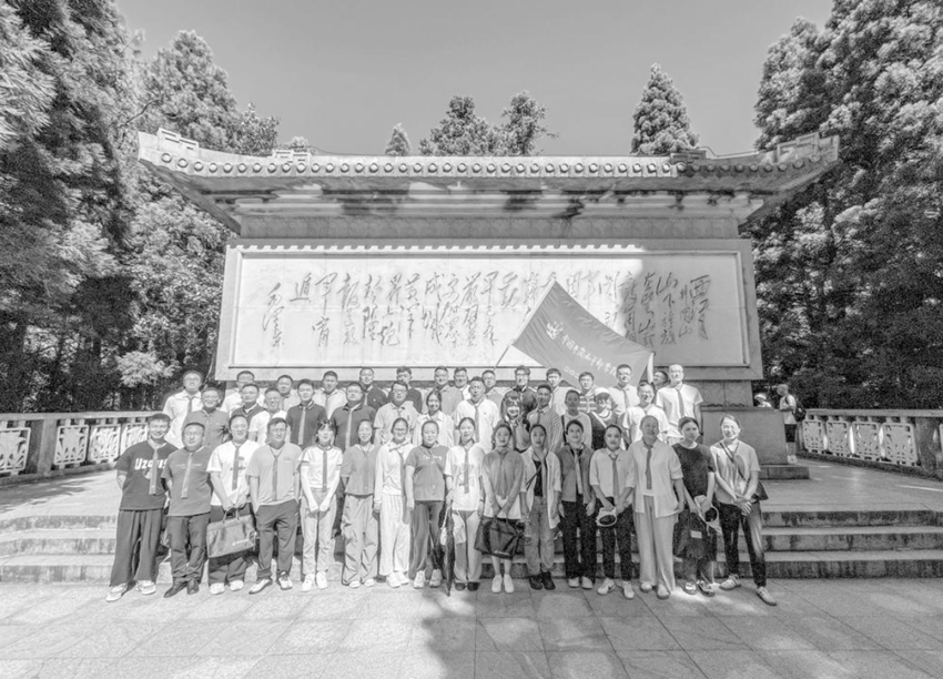 在井岡山革命烈士陵園,全體學(xué)員懷著悲壯而沉重的心情憑吊了長眠于此的烈士。