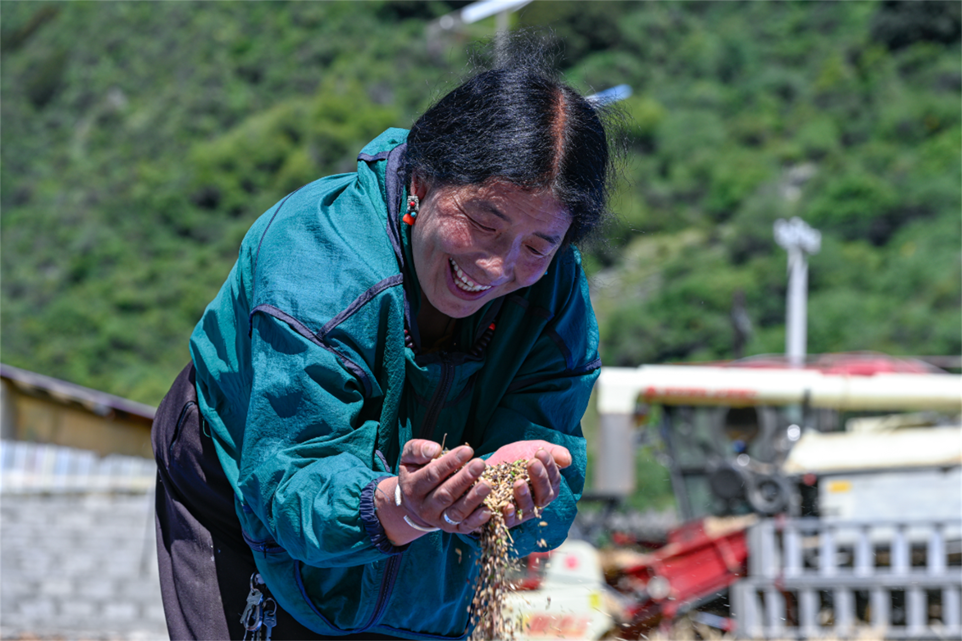 村民普巴高興地說(shuō):“以前我們都是人工收割青稞,費(fèi)時(shí)費(fèi)力。近年來(lái)我們村秋收全都用上了收割機(jī),比人工可快多了。而且今年雨水充沛,同時(shí)得益于科學(xué)的育秧、統(tǒng)一的病蟲害防治以及增施有機(jī)肥等措施,青稞長(zhǎng)勢(shì)不錯(cuò)?!?/span>