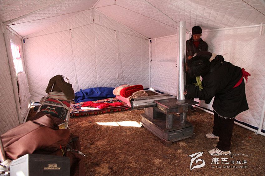 村民朗樂帶著10歲的兒子益德尼瑪正在忙著安裝分配給他們的取暖鋼爐,看見筆者串門便笑著說:“我們原來的是單帳篷,上前天剛剛給換了棉帳篷,今天又發(fā)了取暖用鋼爐,這個冬天完全可以平安渡過了。”