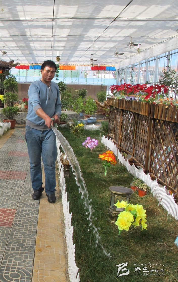 今年34歲的赤乃是甘孜鎮(zhèn)瓦巴村村民,原是一名以畫唐卡、藏式家具圖案等藏畫為主的民間藝人。多年來,在五省藏區(qū)一帶謀生。在看到拉薩等地的農民種植花卉致富后,赤乃萌生了發(fā)展特色農業(yè),從土地上增收致富的愿望。他的想法得到了向巴呷登、拉巴等10戶親戚的響應,大家群策群力、有錢出錢,有力出力。合作社從去年4月開始籌劃建設, 7月在縣工商局登記注冊:其業(yè)務范圍為有機蔬菜種植、觀賞植物種植、觀光種植業(yè)發(fā)展。注冊資金100萬元,由10戶農民家庭組成,其中7戶為貧困戶家庭,現(xiàn)有成員為21名。種植基地選址地熱資源豐富的河壩社,在社員布姆家近10畝承包地上,將原有的塑料溫室大棚改建為現(xiàn)代化智能玻璃溫室大棚?;赜幸粋€很美麗的名字叫做“德西花園”(“德西”藏語意為幸福)。