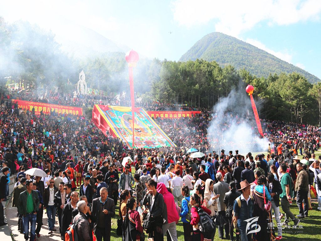 康定“四月八”跑馬山轉(zhuǎn)山會,是自藏傳佛教入康定起就有的活動,至今已有千年歷史。相傳農(nóng)歷四月初八是佛祖釋迦牟尼的誕辰日,這天跑馬山頂?shù)奈迳V杏芯艞l龍吐水為佛祖沐浴,故稱浴佛節(jié)。人們?yōu)榧o念這一吉祥日子,每逢農(nóng)歷四月初八,便從四面八方不約而同云集康定跑馬山上,載歌載舞,預(yù)祝豐收,場面壯觀,熱鬧非凡。據(jù)初步統(tǒng)計,在今年四月八當天,共有近四萬名各族群眾、游客齊聚跑馬山歡度傳統(tǒng)佳節(jié)。